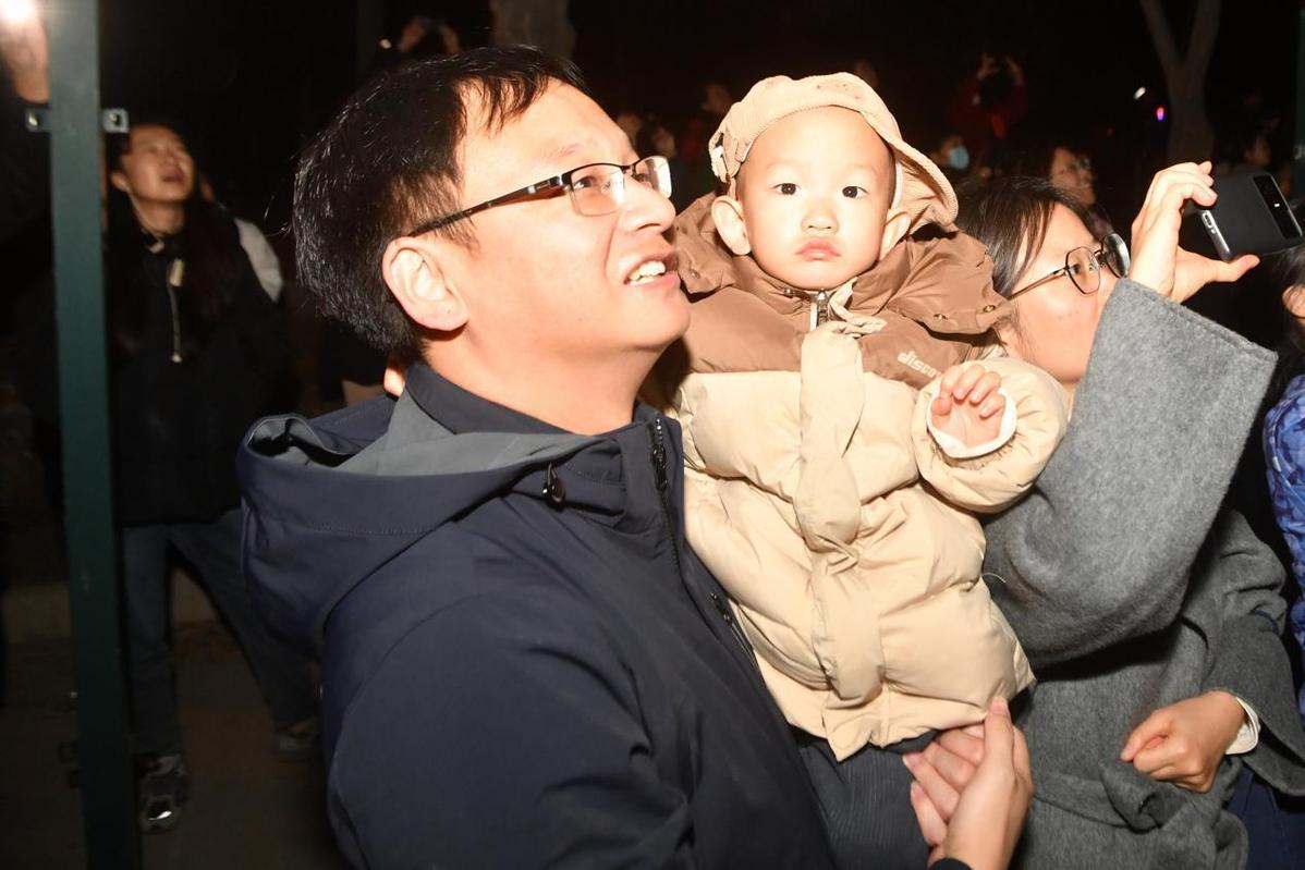 随后,不同民族的人物形象在天际相聚,手拉手、心贴心,渐渐融合成一枚饱满的石榴,恰是各族人民“像石榴籽一样紧紧抱在一起”的生动隐喻。现场观众纷纷驻足惊叹,不少人拿出手机记录下这难忘的瞬间。