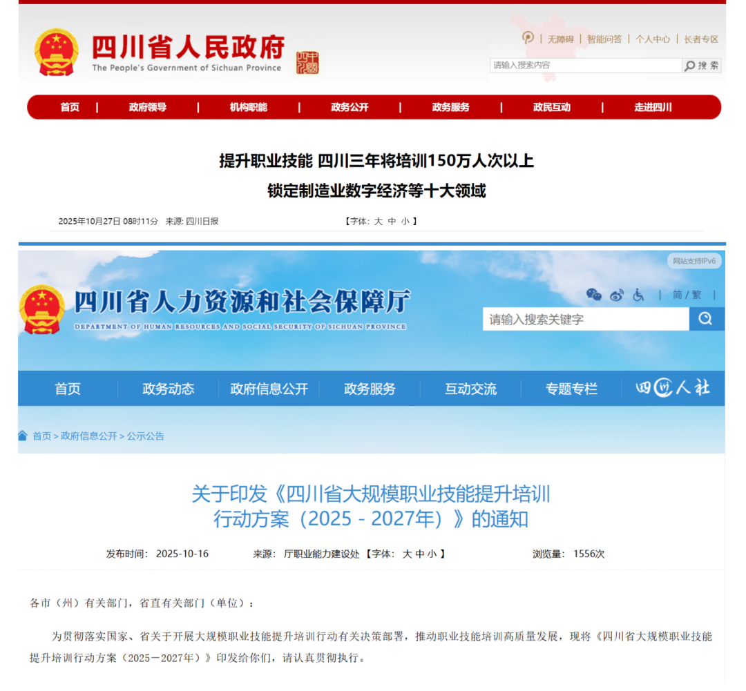 来源:四川省人社厅网站、四川省政府网站、四川发布、四川在线。