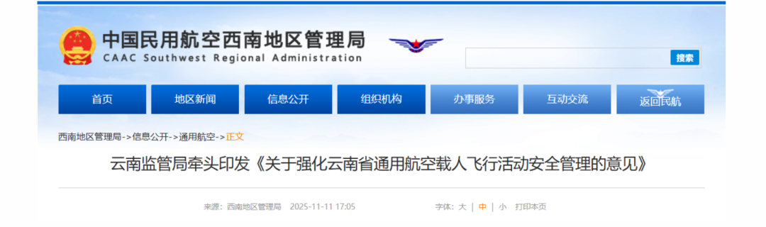近日,云南监管局牵头印发《关于强化云南省通用航空载人飞行活动安全管理的意见》,民航西南局同步公布相关信息。意见聚焦通用航空企业载人飞行安全管理强化、非法载人飞行活动打击两大核心,将助力云南通用航空安全有序发展。值得关注的是,这也是我国首个针对通航载人飞行安全管理的省级专门意见。