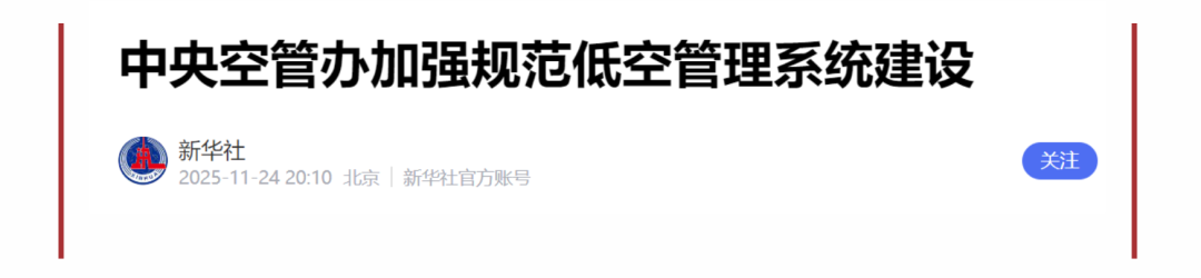 ‣   中央空管办出手!低空管理系统建设迈入规范化新阶段