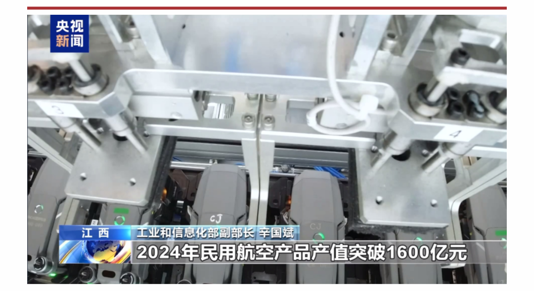 工业和信息化部副部长介绍,产业规模不断扩大,产品体系持续完善,系列化发展进程加快,低空装备市场活力显著增强,企业数量产品种类不断扩展。2024年民用航空产品产值突破1600亿元,同比增长23.6%
