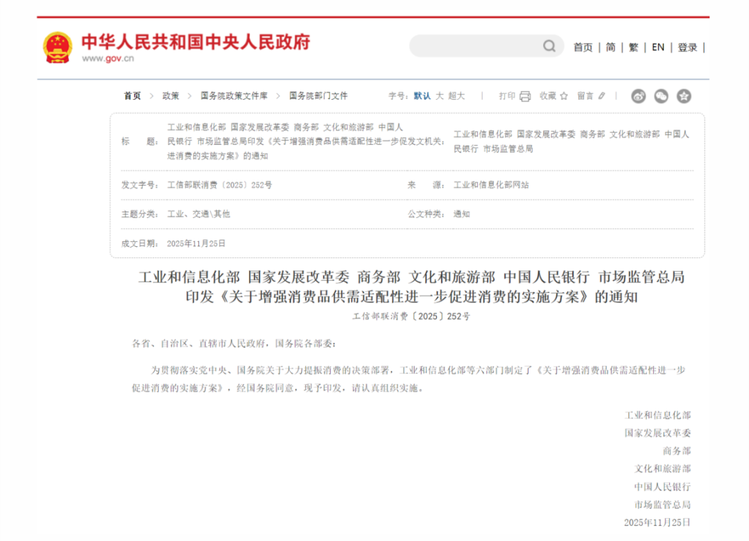 11月25日,经国务院同意,工业和信息化部、国家发展改革委、商务部、文化和旅游部、中国人民银行和市场监管总局联合印发《关于增强消费品供需适配性进一步促进消费的实施方案》(以下简称《方案》),以消费升级引领产业升级,以优质供给更好满足多元需求,实现供需更高水平动态平衡,其中明确提出:拓展多元兴趣消费供给。积极发展宠物周边、动漫、潮服潮玩等兴趣消费产品。在严控风险、确保安全的前提下,有序扩大低空旅游、航空运动、私人飞行、消费级无人机等低空消费供给。大力发展休闲和运动产品。聚焦山地、水上、冰雪、汽摩、航空等运动热点,支持有条件的地方建设航空飞行营地、特色运动装备器材产业园。支持各地因地制宜建设智慧体育场馆、智能体育公园等。据工信微报介绍,这是党的二十届四中全会召开后首个印发的关于促消费政策文件。