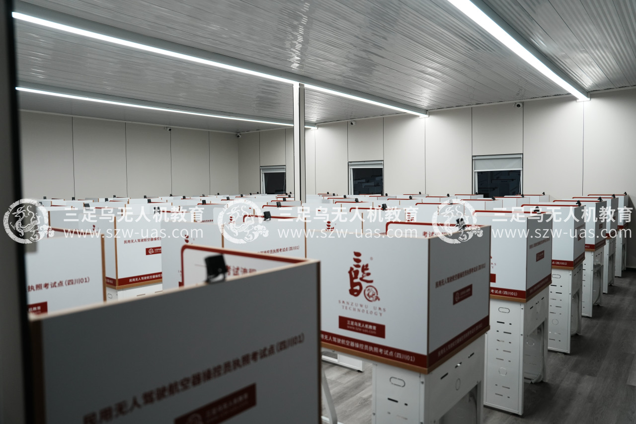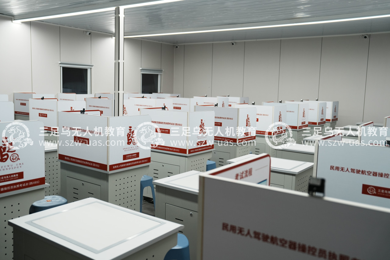 与此同时,理论考场二配备了可灵活转换的定制化翻转桌,能从容应对理论考试与地面站考核的双重需求,展现了考场设施的高度适配性与专业性。