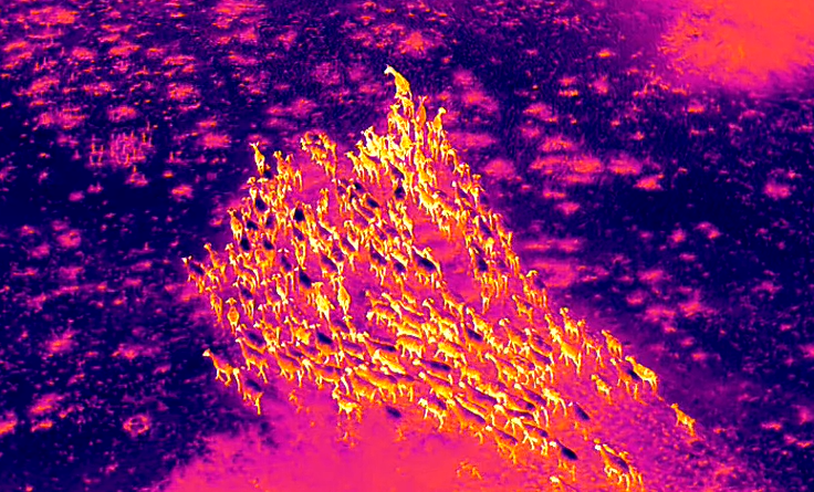 2024年10月20日,新疆出入境边防检查总站伊犁边境管理支队可克达拉边境派出所民警利用无人机热成像功能找到丢失羊群。通讯员 李晖摄