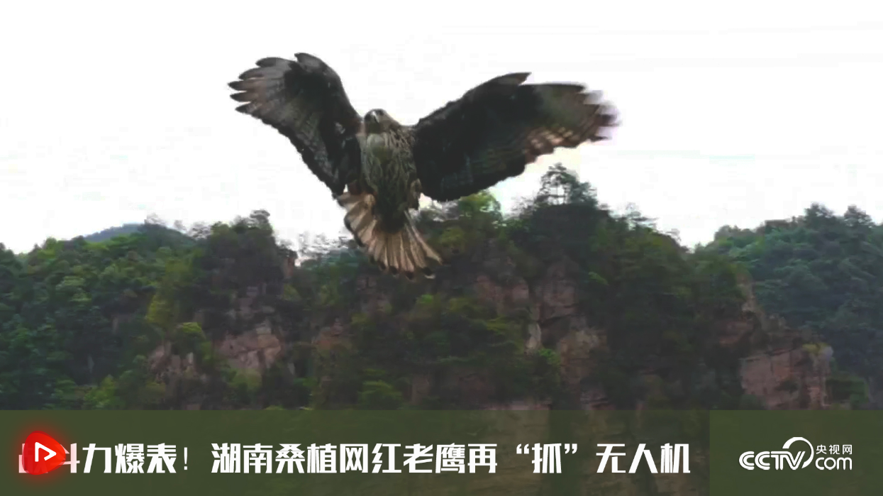 央视网消息:10日,湖南张家界九天峰恋景区一台正在拍摄的无人机被老鹰当成猎物“带”走。该事件引发网友关注,许多攀岩爱好者主动联系,希望能去搜寻这台“可怜”的无人机。14日,志愿者们在寻找该无人机的过程中遇到困难,决定用另外一台无人机进行定位,结果新的无人机刚升空一会儿,又被这只“网红鹰”抓走了。
