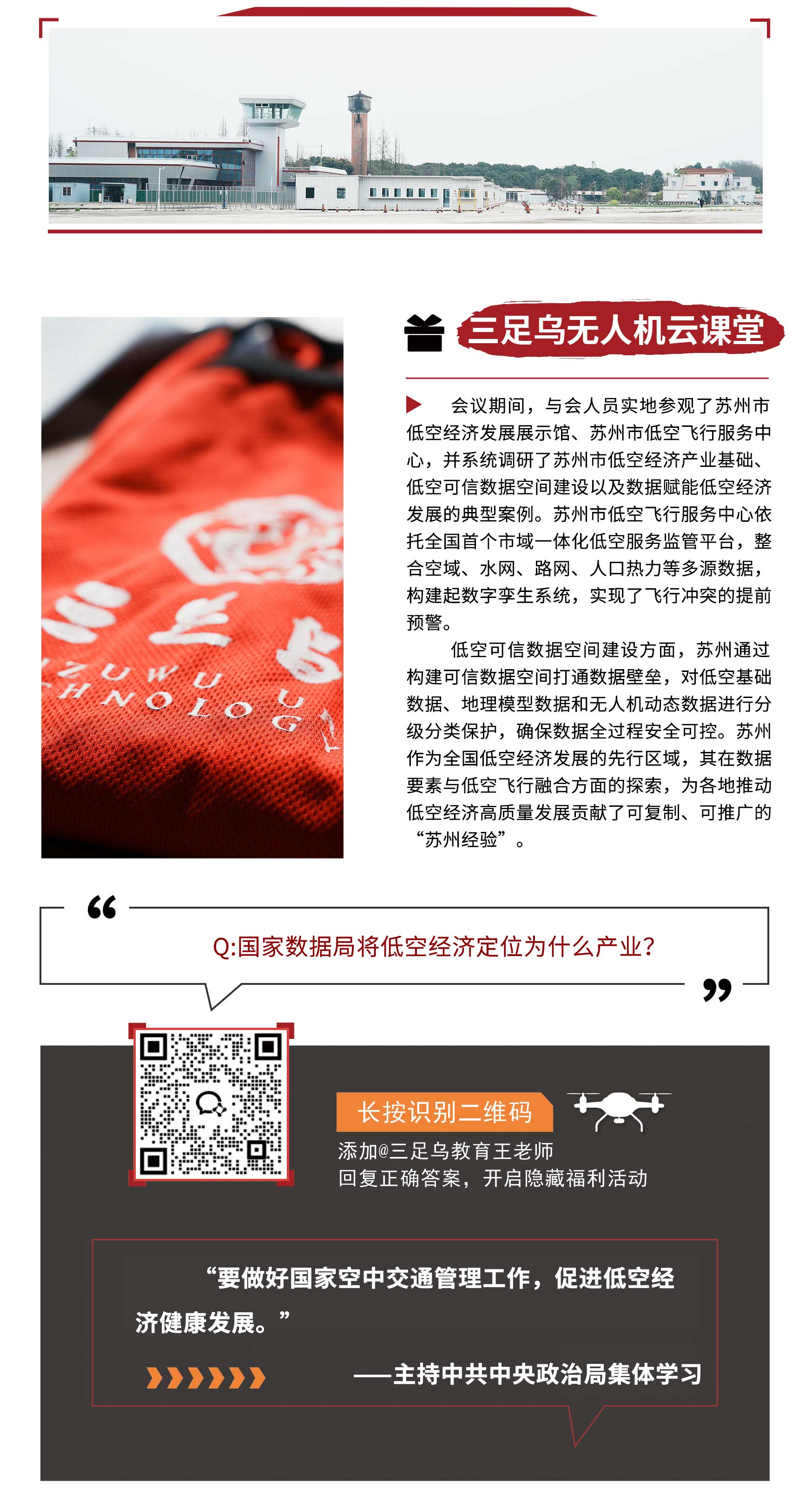 拂云旗帜炫青红,三足金乌跃长空,在低空经济飞速发展的形势下,三足乌无人机教育将不忘初心,牢记使命,继续肩扛地区无人机人才培养行业领头旗帜,携手各行业同仁,共架蓝天,共享天际,持续为行业有序发展添砖加瓦,贡献绵薄之力。