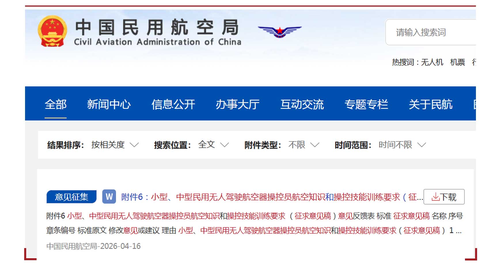近日,中国民用航空局适航司正式发布《小型、中型民用无人驾驶航空器操控员航空知识和操控技能训练要求(征求意见稿)》,面向社会公开征求意见。该标准旨在构建科学、统一的小型、中型民用无人驾驶航空器操控员航空知识和操控技能训练体系,规范培训与考核,推动无人机操控员资质体系建设。