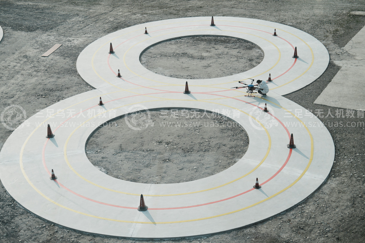 实操考试区为严格按照民航局标准建设的飞行场地。场地内最核心的设施是10个完全标准化的“水平8字”飞行考核区。