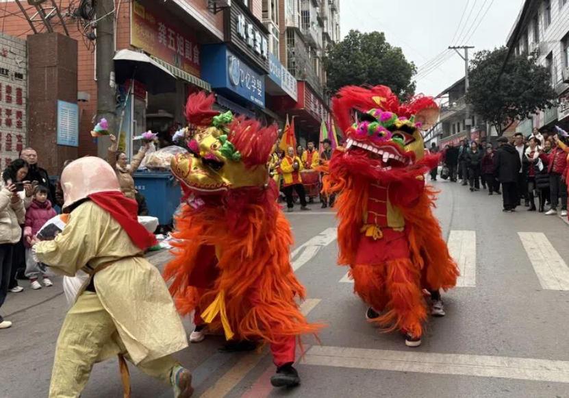 连日来,贡井区桥头镇锣鼓喧天、喜气盈街。由非遗传承人刘大义领衔的桥头狮灯表演队身着鎏金绣纹表演服,踏着铿锵鼓点走上街头,为沿街商户与群众献上精彩的新春展演。其所到之处掌声、喝彩声不断,处处洋溢着喜庆祥和的节日氛围。